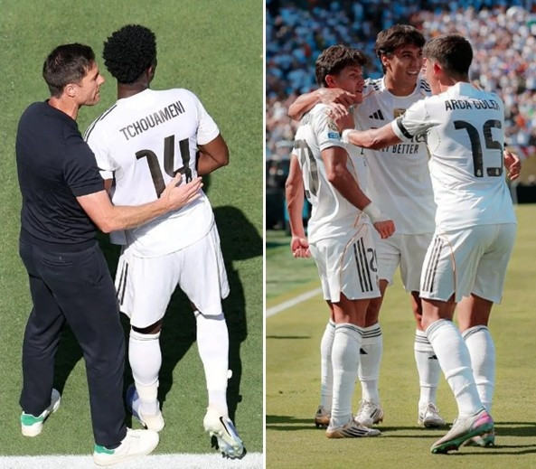 针对安切洛蒂时代后期的种种弊端,阿隆索采取了一系列措施,试图重新唤醒球员们的斗志。皇马在备战期始终坚持“一天两练”,球员们在场上的侵略性明显提升,就连姆巴佩这样的球员都开始积极参与反抢,居勒尔更是主动增重来提升对抗能力。考虑到大多数球员都没有踢三中卫阵型的经历,阿隆索放弃了自己擅长的蓝本,继续使用安切洛蒂留下的四后卫阵型。