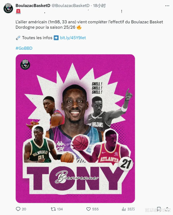 北京时间8月24日,法国乙级联赛球队布拉扎克官方宣布:一年合同正式签约前NBA球员托尼-斯内尔。教主搜了一下,法乙联赛的薪资水平远低于法甲。外援的月薪通常只有几千欧元,年薪也不会超过十万欧元,比NBA十天合同还少。