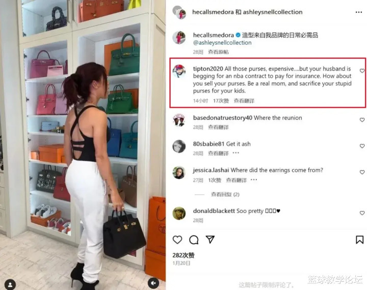 斯内尔说:“我真的想在NBA打十年,保障我的家人一辈子。”巴克利等人也为斯内尔发声。但斯内尔老婆Ashley Snell一直在炫富,各种名牌包包、豪车、飞机……有球迷在评论区质疑,为什么不卖包帮孩子看病?评论被她给删了。