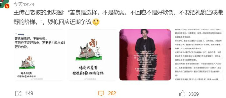 可现在事情已经逐渐明朗,王传君老板却开始暗戳戳的为自家明星抱不平了,用词很犀利。