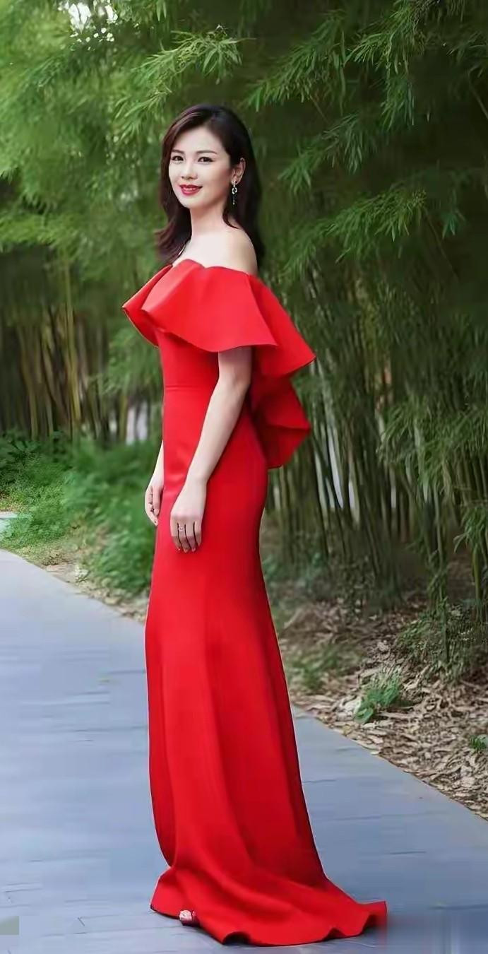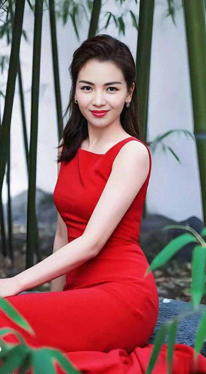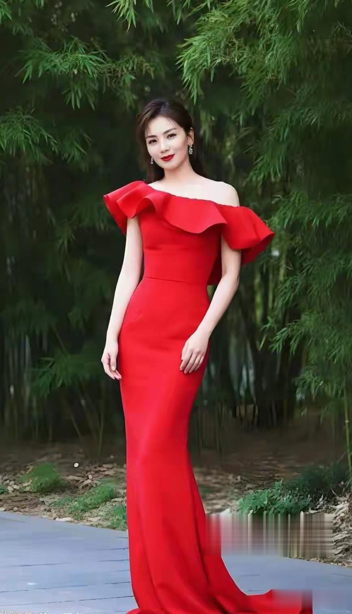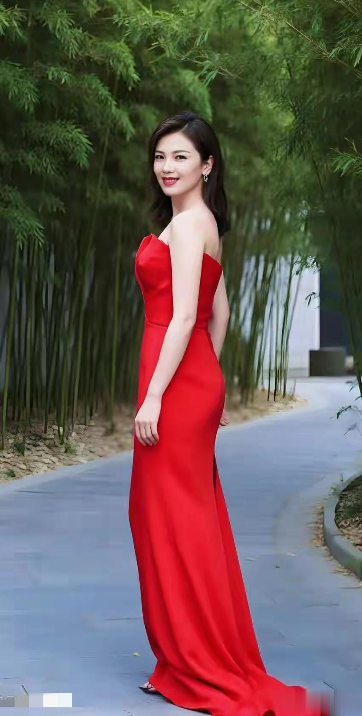 刘涛户外背带红裙搭车配美景, 自然背景都成了衬托美的很高级时尚