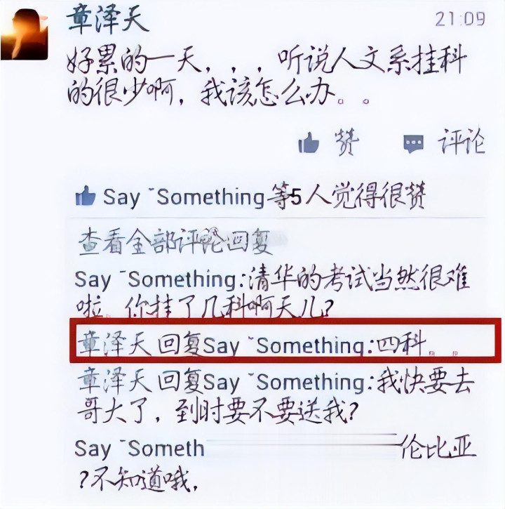 当时章泽天的回应是什么?