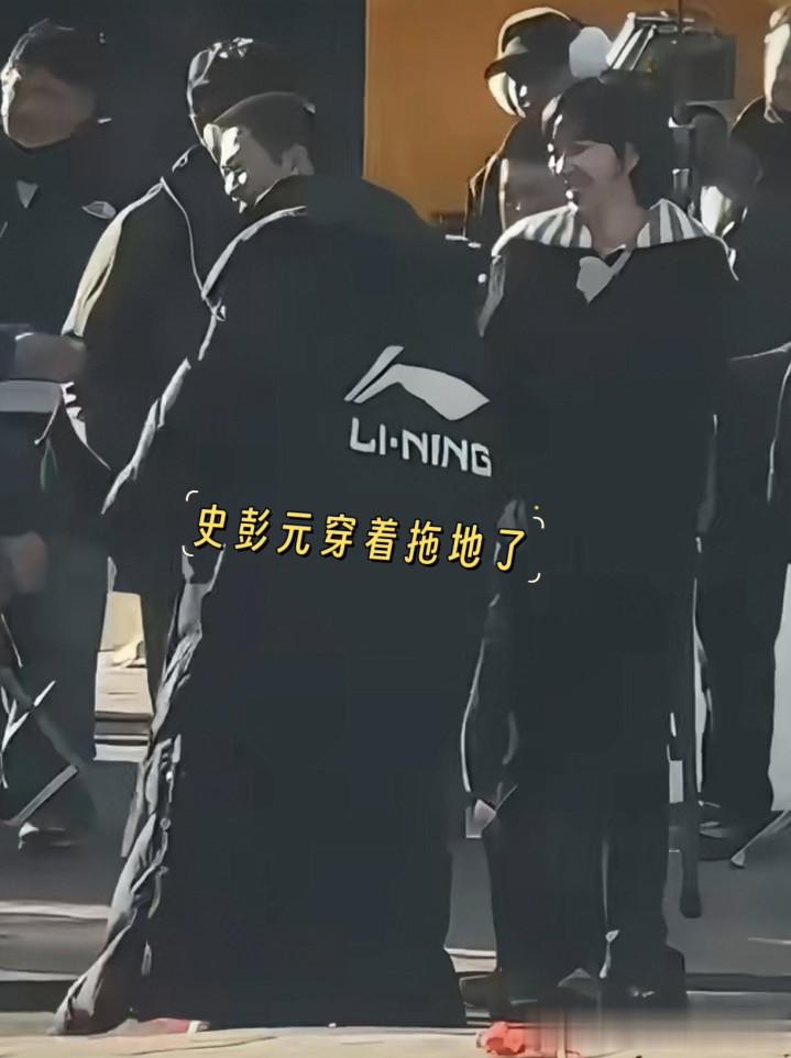 没想到178cm身高的史彭元穿起来直接拖地了,像是小孩穿了大人的衣服,不得不说肖战身高是真的高啊!