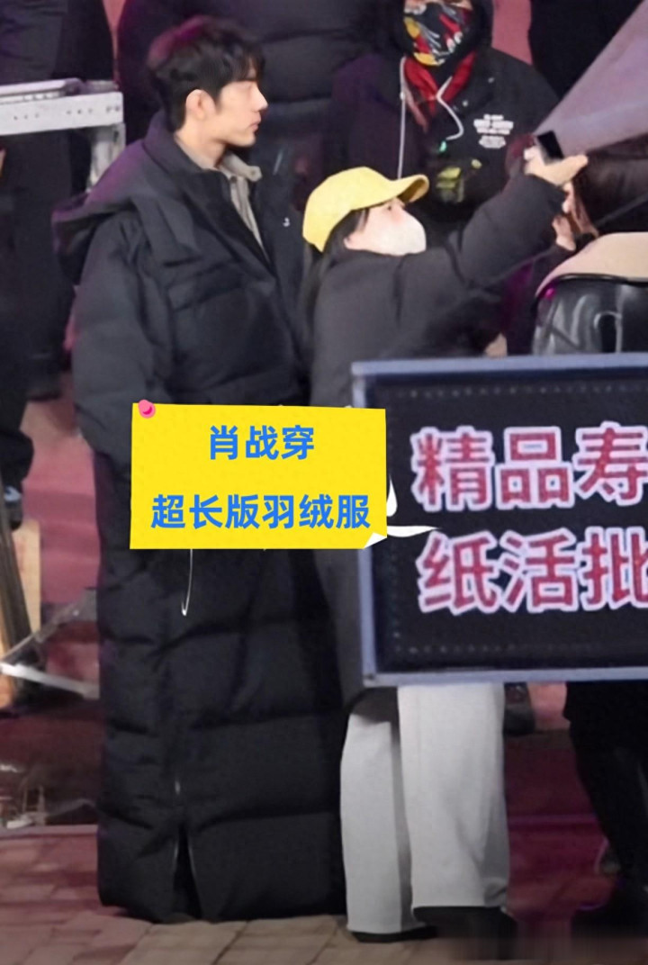 同剧组的史彭元看到肖战的超长版羽绒服后,表示很好奇,从来没见过这么长的羽绒服,身高186cm的肖战穿起来都不显短,因此史彭元试穿了一下。