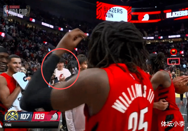 可在开拓者庆祝的时候,却没有看到我国球员杨瀚森的身影,有谁注意他的举动?杨瀚森没有与队友一同围着圈,而是在外围不断鼓掌,并没有彻底融入进来,多少还是有些不适应的。本场比赛杨瀚森一分钟都没打,一直坐在替补席上,也是本赛季首次被DNP,也是有些可惜的,错失了与偶像约基奇交手的机会。